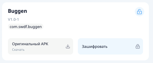При успешном шифровании становится доступной возможность скачивания зашифрованной версии приложения по нажатию на кнопку Зашифрованный APK.